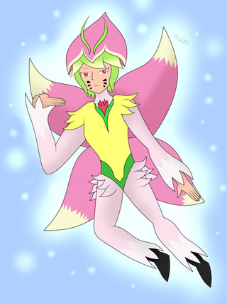 #fanart #anime #cute #digimon #drawing #flower #lalamon #lilac #smilehappy #videogame #women #digimonsavers #lilamon #digimondatasquad #digital_art