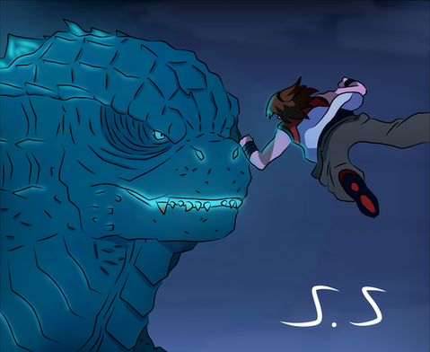 I always had this idea in my head..."If Masaru/Marcus from Digimon Savers can knock down building-sized Digimon with one punch, what if he fought Godzilla?!"