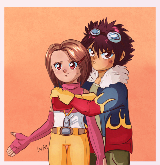 After a long time, another Digimon Tamers drawing. Many people's favorite Digimon season, and this time it's a drawing of two characters who have a very funny dynamic, Ruki and Ryo, the first time I've drawn Ryo, to tell you the truth I hardly ever draw anything from Tamers :/Anyway, Ryo is an interesting character to say the least, there's a lot of lore about him, and his partition into the Tamers was cool, it was nice to see a more experienced Tamer compared to the main trio. And Ruki I think I've said before, she's a very well-developed character, the best female character in Digimon anime if we're going to analyze it technically.