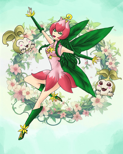 #fanart #digimon #anime #crossover #cute #digimonadventure #digitalmonsters #drawing #flower #funny #lilac #lillymon #sisters #videogame #wholesome #digimonsavers #lilamon #digimondatasquad #digital_art