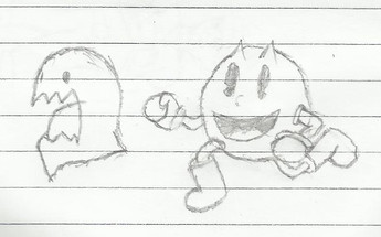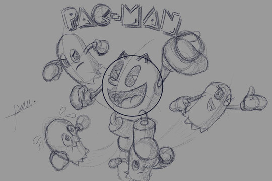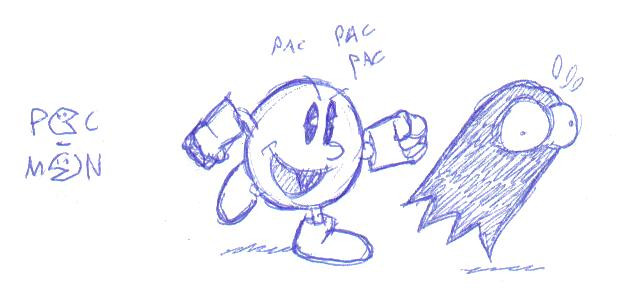 Pacman looks great. I like the running pose and the worried look on the Ghost's face.