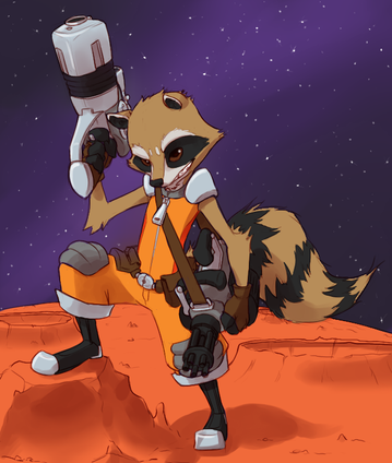 Aside from that, Rocky (Yes, I nicknamed this guy because no matter how badass he is, it just doesn't cancel out the cuteness factor in his design) will be an awesome character and probably will capture the hearts of girls and Japanese fans (he's a raccoon, a cute animal). So maybe he'll be the next Cable... though if they make him crawl, then projectiles would have a real hard time to hit!