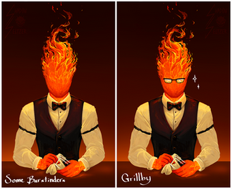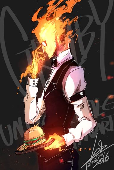 Grillby might have all the class, and Nice Cream Guy might have all the charm, but Burgerpants has all the "stoned-out-of-my-mind-while-on-the-job!" These guys are awesome with the way you draw them.