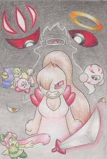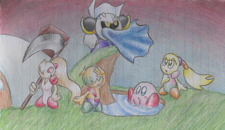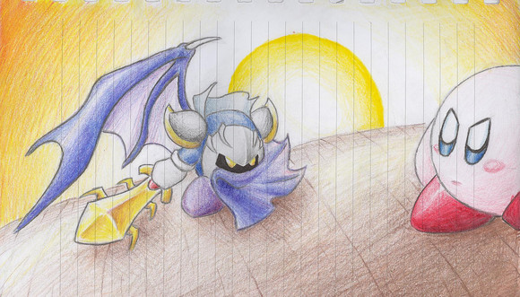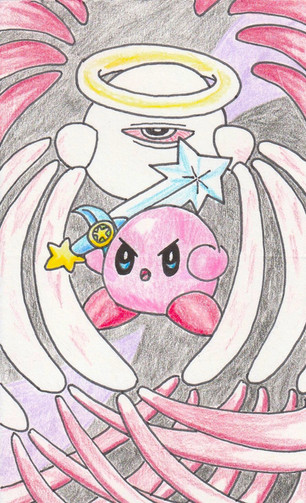 Next to Meta Knight, 02 is my favorite vidoe game character. i tried to throw ribbon in, but couldnt fit her in, so kirby is flying solo against the undead leader of the Dark Matter Army.Related content