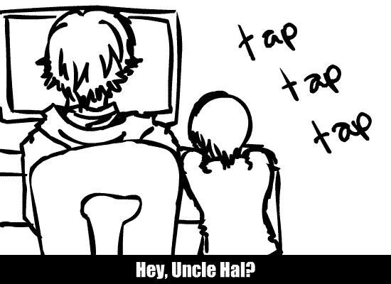 "Uncle Hal! Snake! <3 i made some eggs~~~ <333 i can cook, aren't you proud of me~?"