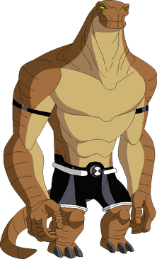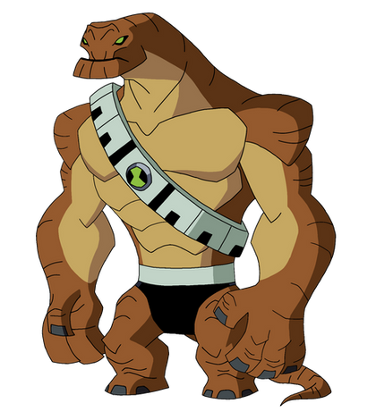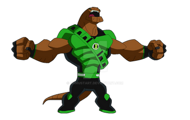 A redesign of Humungousaur from OmniverseAnother sash has been added with shorts instead of a speedo and the omnitrix badge has been moved