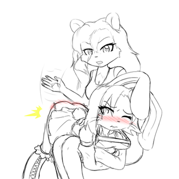 Now that's a spanking! You can almost see the sparks flying from a fanny that's catching fire! Two things make the event particuarly erotic: the tail grab and Tails' backward glance toward the continuing punishment. Poor Tails must be so embarrassed!