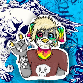 #digitalart #originalcharacter #characterdesign #fursona #blue #circus #emo #male #piercings #pink #pixel #poodle #rainbow #scene #yellow #scenehair #crunkcore #shittytattoo