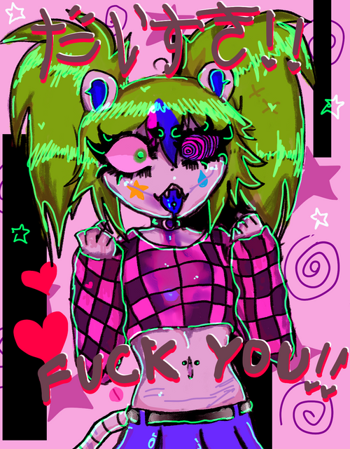 #originalcharacter #characterdesign #batwings #butterflies #butterfly #colorful #edgy #green #neon #pink #punk #rat #rodent #scythe #glamfur #gloomfur