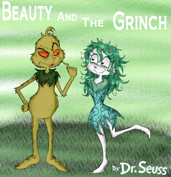 This took me two days to finish. I love how this turns out. Martha is wearing green. LOLKinda inspired by the Beauty and the Beast scene. The Grinch gave Martha his study/library since she lives with him. ^^