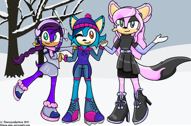 I made a team! Snowflake the Ice Queen, Buck the Reindeer, and Rosie the Pegasus. They call themselves, Team Frozen.In Snowflake's world, there are different mobians. Such as the Pegasus, unicorns, moose, and reindeer.
