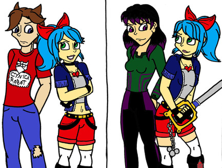The dread on her eye is a but shorter. And see of you could draw a smirk on her lips. Other than that, they look awesome!