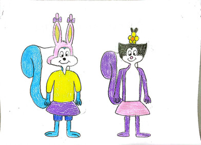 Part of the "retro/Scaredy" roll I got on. My OCs having fun--we could say that Stasher and Ruddy are roommates.Stasher Squirrel and Ruddy the Retro Rabbit (C)