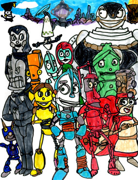Oil painting loosely based on the "Robots" film promotional posters.Characters (C) 2005 Twentieth Century Fox Film Corporation