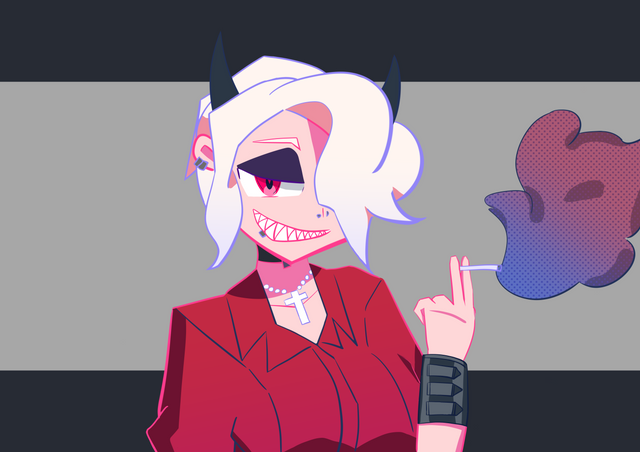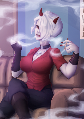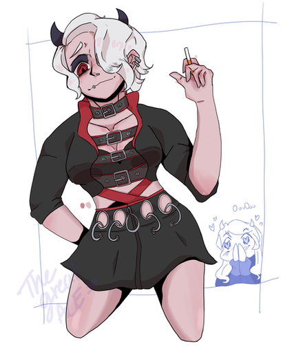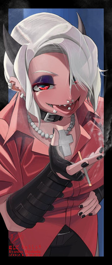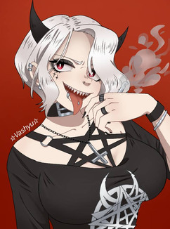 #anime #fanart #manga #helltaker #demongirl #piercings #sharkteeth #tattoos #zdrada #helltakerfanart