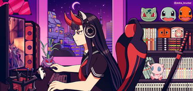 #st41nn #fanart #fanartdigital #horns #ironmouse #pinkhair #smugface