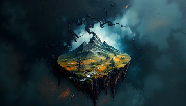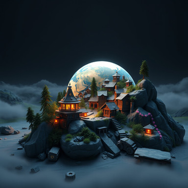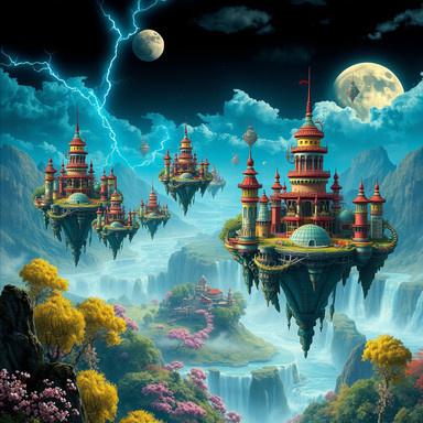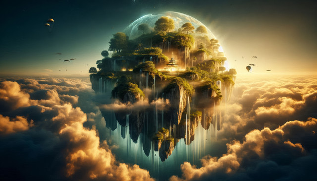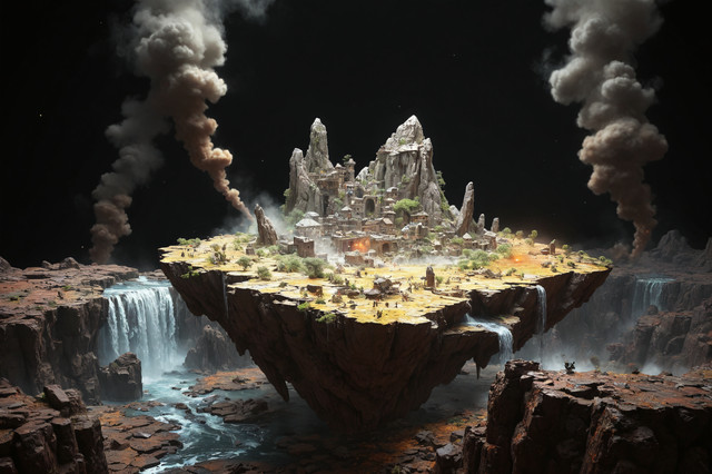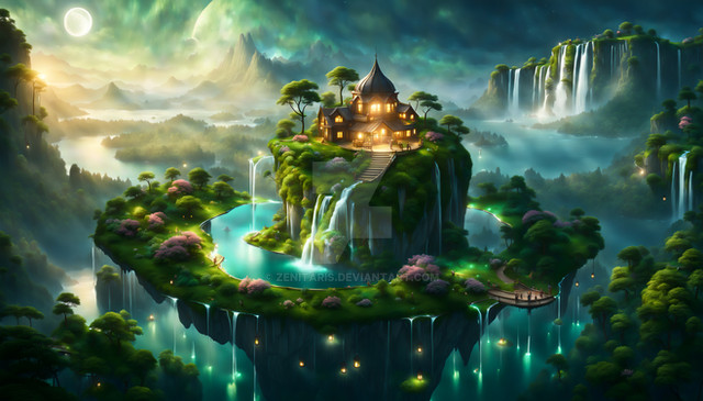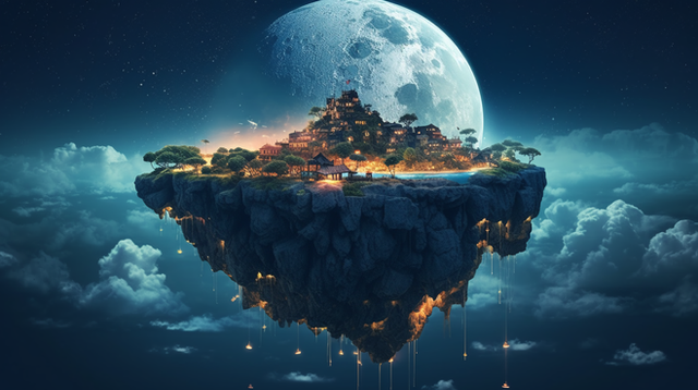 #ai #ancient #civilisation #description #digitalart #fantasy #fantasyart #floating #island #medieval #moon #waterfall #aiart