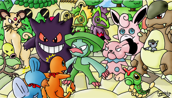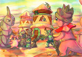 The place was bustling. It was relatively small (I counted seven buildings, four of them being shops), but it was packed. Probably mainly Pokémon coming in and out from both ends of the village, with a sign over each entrance/exit, but there were a fair number of Pokémon here. Also, for being put together by Pokémon, it was surprisingly modern.