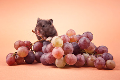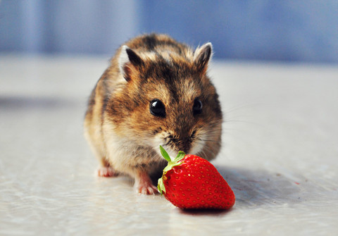 Adorable. It kind of looks like the hamster realized that the berry is too big to fit a little too late as it seems surprised.Β