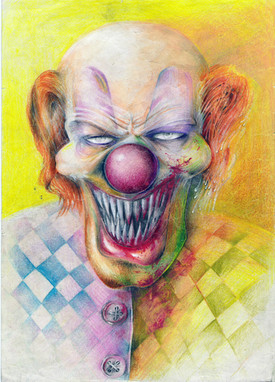 Damn cool work! I especially like the work on his sinister teeth and the bullet shell casings around this evil clown's face