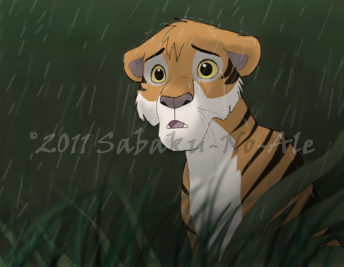Утром я снова отправился бродить по джунглям. Всё было как всегда: леc был полон звуков и запахов. Ничего нового. Вдруг я почуял чей-то запах. Это не был запах добычи или чего ещё... Это был запах тигра. Фыркнув, я пошёл на запах. Чем ближе я подходил к незнакомцу, тем "ярче" становился запах. И вот, выйдя на поляну, я ничего и никого не увидел. Очень удивившись, я огляделся по сторонам, но так ничего и не увидел. Вдруг я услышал шум листьев и поднял голову наверх, удивляясь увиденному...In the morning I went to roam the jungle again. Everything was as usual: the forest was full of sounds and smells. Nothing new. Suddenly I felt someone's smell. It wasn't the smell of prey or anything else... It was the smell of the tiger. I snorted and went to the smell. The closer I approached to the stranger, the "brighter" the smell became.When I came to a small clearing I saw nothing. Very surprised, I looked around but didn't see nobody. Suddenly I heard the sound of leaves and lifted her head up, surprised at what I saw...