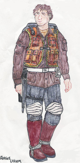 Good background story! And i like the folding in his clothes, as well as all the designs on his jacket! Very nice!