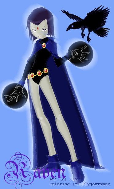 Very nicely done. You kept the traditional Raven look but gave her the slightly longer air style from the comic version. I also like that you exposed her face under the hood. That to me looks way better than her face hidden under the shadow.