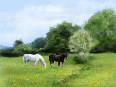 Practising my digital painting. It's been a good while since I did a full piece like this. I took photos of these two foals a year or two back at a stud I was visiting.