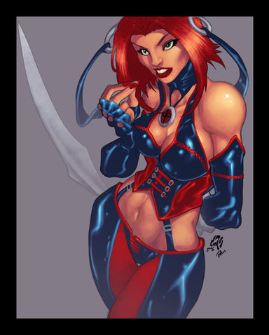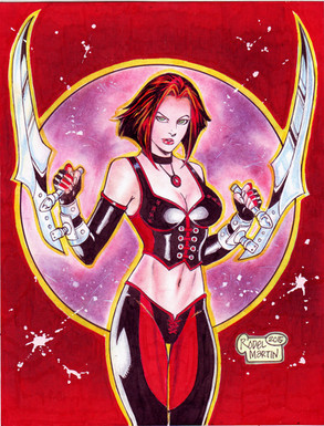 Awesome artwork, I am a huge fan of BloodRayne. I currently have all 4 issues of the one-shot comics. So far, the first, Skies Afire has been my favorite and now I'm waiting on the Twin Blades which hopefully I'll soon be getting ahold of. And no, I did not see the movie, I completely steered clear of it as I didn't want my image of the comic tainted. hehe