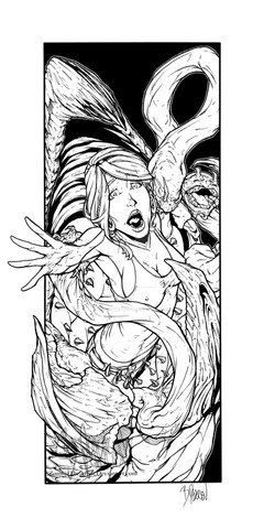 I don't think I translated that too well but the end result still pleased me enough to finish it like this. Thanks for the kind words about the inking (and feet!) and I'm glad you liked it.