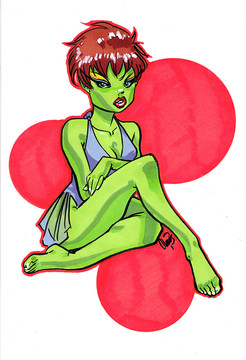 It's amazing how beautiful a girl with green skin can be, especially when rendered with this much skill.. Although her right shoulder seems to be a bit too large.