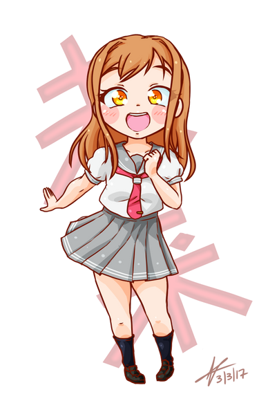 really cute, I love the hair, eyes, expression, pose, coloring, and background