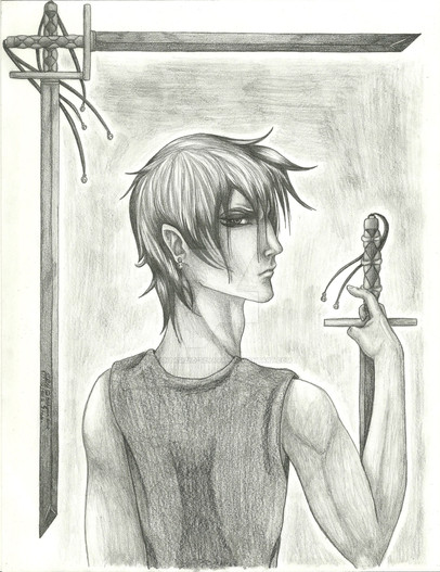 : D this is so gorgeous. why haven't i seen your gallery sooner? anyway... i really like the scratchy linework in this piece. also love the colors you chose, mostly reddish. the skin is really good. my crit on this one is the wrist holding the sword looks a bit too high.