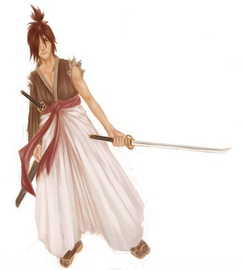 What?? No Comments?! This pic is pretty! Kinda looks Blade of the Immortally+Kenshin (IMO of course). Kenshin...whee...I like his hair the most, I think. n-n
