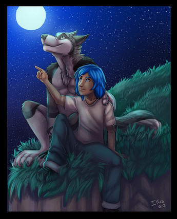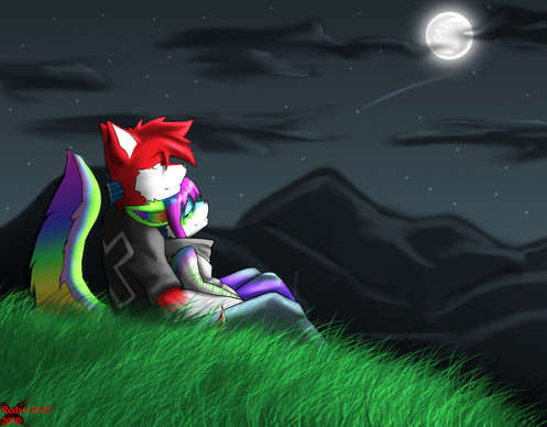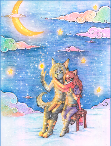 One of my few attempts at a full background, even if it's a rather simple one.Tala and Nash, enjoying a night of star-gazing to themselves. Once again you can tell the round about time frame I drew this in lol. Oh well, chilly nights with someone to share them with are always fun
