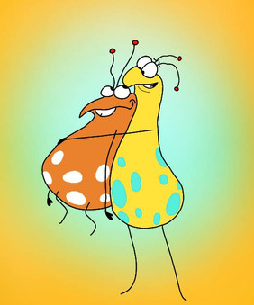 These are the Zurks I created for this club I'm in, The white and black one is called Une, she is very mean and bossy, and always has a heavy shadow cast over her, no matter how much light dares to shine on her. Her twin brother, Dune, has no self-esteem and is dragged around by Une. He has a slight glow and, opposite his sister, never has a shadow. They are joined at the tail.I just did this really quickly - I'm just really not very happy right now, and I felt like doing something other than homework. So ta-da.