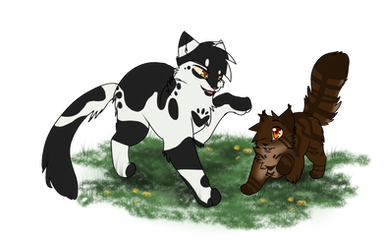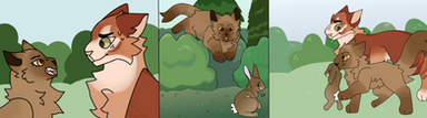 Maplesplash is out hunting on his own, to show that he is a decent hunter! With luck on his side, he found a rabbit that was out on its own! So the young warrior shot into action, ready to try and pounce on it before it could get away!---