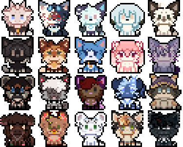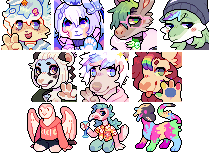all the mini pixels ive done so far!i have two mini pixel slots open as well as a couple other types of commissions if you're interested! ☆ CLICK HERE ☆