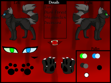 Bio/Info: Dread is evil, though he has some rare moments when he can be the slightest bit kind. His eye is always drawn like that. His other eye is never shown and no one knows what it looks like. His back mane flows into his tail. He is declawed, except for one paw.