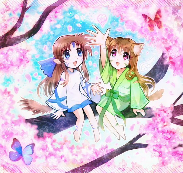 My OCs Stela, Sabrina, Tipi (the blue bird), Tiki (the pink bird) and Miki (the cat) from my manga "Bota e Fantazisë" (The world of Fantasy): starca.deviantart.com/art/Bota…All made with the GIMP program and wacom tablet.