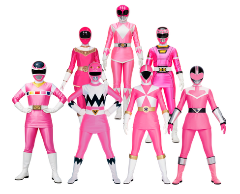 yeah this is cool and seeing this made me realize that how little pink rangers there were and that if you look at power rangers every season has a yellow ranger red ranger and blue but the other colors are optional the other ranger for a five ranger team is pink and green or black or for extra rangers on a 3 ranger team can be any color but usually silver or gold or white