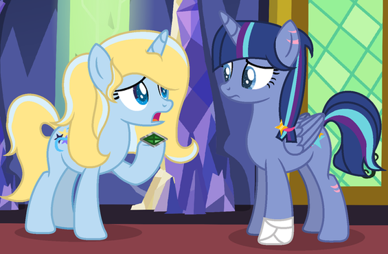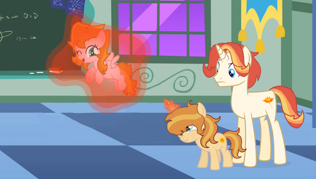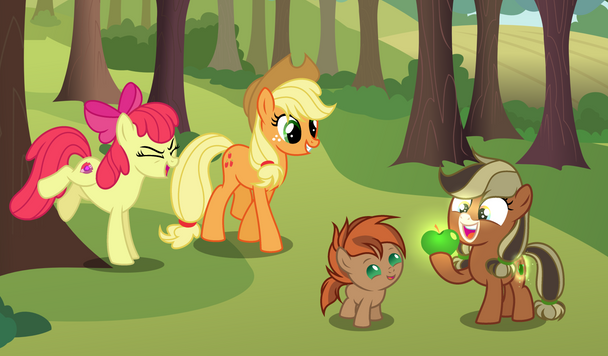 Apple Jam gets magic lessons from her dad, Starshine gets flying lessons from her dad in mare form, and Blue Grass gets father son time with him and lessons on bucking trees from his mom. So no none of the kids are really jealous of each other.