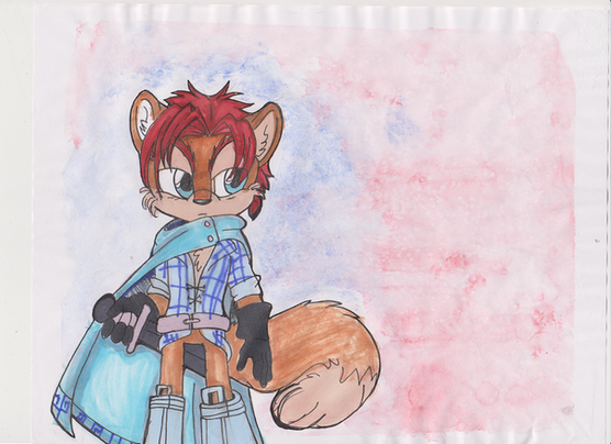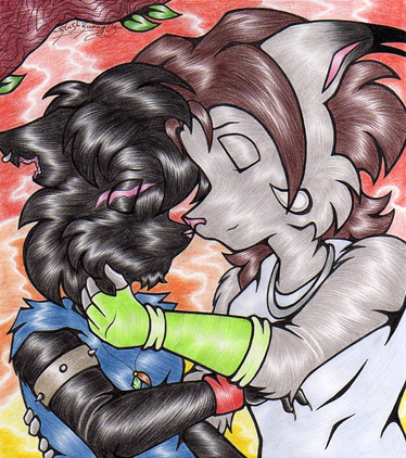 I wanted to try doing a piece with mixed media. I drew Eli at 3 am last night, then I drew Sally while I was at school today, and taped the pieces of paper together. When I got home I water colored it which produced this-I then colored it with markers, shaded with some colored pencil , and had fun with white out and a white gel pen. This was a test to try to see what worked what didn't, exc. I would really appreciate crit whether goo or bad (on the picture, not my obvious stylistic choices like ear fluff or eye size).