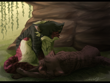 The piece was very clearly made, and it's very easy to tell what the characters are. The originality seems to be full on, however, I can see if it was part of the Warriors fandom. I know that's been very popular lately, and to be honest I do like that book series. The technique that you used with the lighting, shading, texturing, drawing, color, and inking is phenomenal. The impact is pretty much just WOAH THIS IS PRETTY DARN COOL. It's a good impact. Also, the anatomy on the characters is fantastic. You did a very good job overall, and I hope that this critique helped.