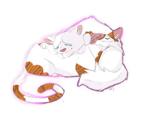 Welp i made it through the first week of school. Here's some cuddling kitties to celebrate and de-stressify ^U^This is seriously the most adorable pairing that ever existed in warriors ;;;; such cuties