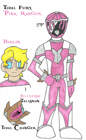 *Backstory-Mako is a happy go lucky young woman. A talented surfer, she's always felt the most at home in the sea. She actually stumbled across the Shark Talisman in a beachside shop, not realizing the purpose of the object until the spirit of the Shark Tidal Zord spoke to her. It told her about the evils of the Trench Mafia and that it was her destiny to help in the battle to save the earth. Mako accepts without hesitation and leads the Tidal Fury Rangers.