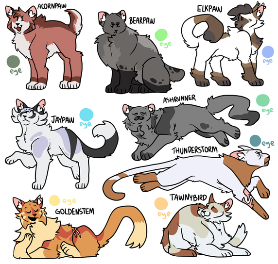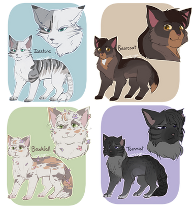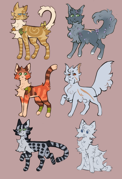 #cat #warriorcats #digitalart #characterdesign #warrior #feline #redtail #spottedleaf #swiftbreeze #patchpelt #willowpelt #adderfang #leopardfoot #multi_animator_project #design_map