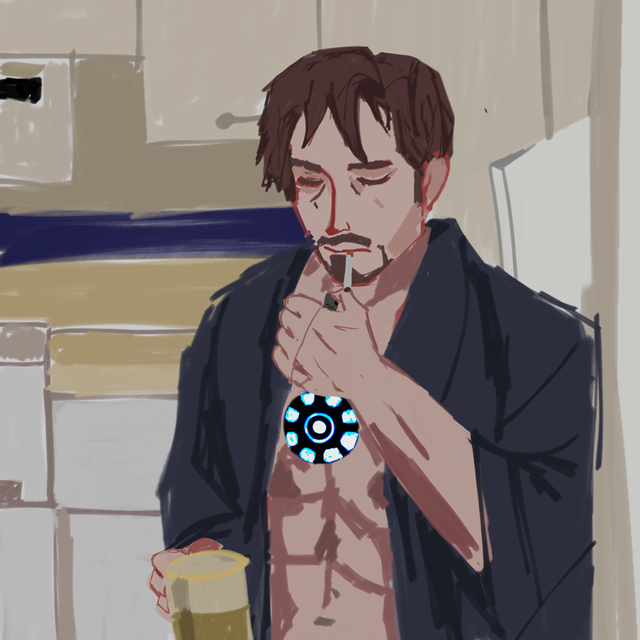 I don't have a lot to say about it. Only that I was watching Civil war when I was drawing him, that's maybe why Tony looks so hurt. '-'