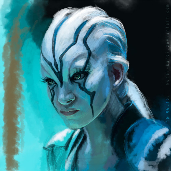 Inverted/negativ picture of Jaylah from "Star Trek: Beyond".Original drawing and inverted/negativ picture ----> sta.sh/02w1xlirve