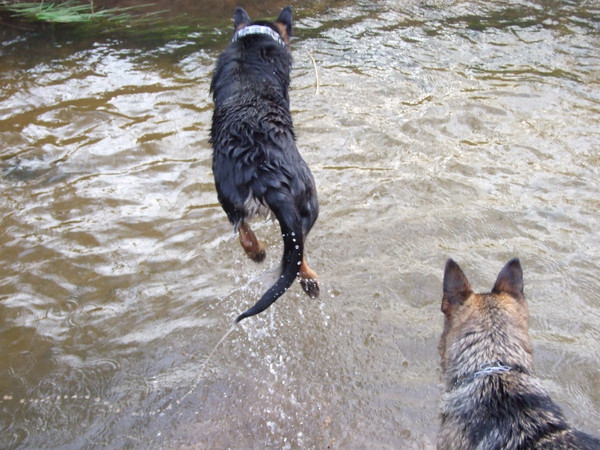 Aww, very cute pupy! I love how it looks like they are having a staring contest!